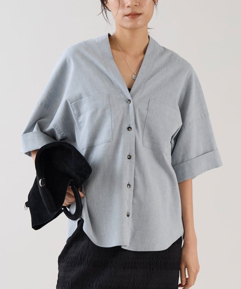 前後Vネックで女性らしいカッティングとラフ感で抜けのあるシャツ。