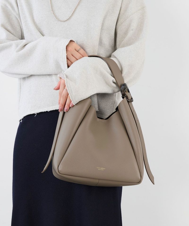 ソフトな質感と軽さが特徴のイタリアンWフェイスレザーを使用したホーボーバッグ。 ニュアンスカラーが魅力で、立体的なフォルムに、程よくモードなアクセントを添えるマーブル調のバックルが特徴です。 開口部が広く荷物の出し入れもスムーズで、実用性も兼ね備えたデザインです。 デイリーはもちろん、オフィスやお出かけにもぴったりな万能バッグです。 【fabric】 牛革にシボ加工を施し、表情豊かで傷も目立ちにくく、しっとりとした柔らかさとハリ感が、上品な佇まいを演出してくれます。 シボの自然な風合いが高級感を引き立て、使いほどに手になじむ素材です。 【coordinate】 グレージュの落ち着いた色味は、カジュアルからきれいめまで幅広いスタイルと好相性。 シンプルコーデには抜け感を、モードコーデには洗練された大人の雰囲気に。 日常から特別なシーンまで幅広く活躍してくれます。 メーカー品番:V-1586 メーカー表記カラー:L/TAUPE / BLACK ※天然皮革は多少の色ムラ、キズ、シワなど自然な表情が残されている場合がございます。風合いとしてお楽しみください。 ※水滴、汗などはシミの原因になります。汗や、雨、摩擦により色移りや色落ちすることがございます。衣類などへの付着にご注意ください。関連の特集ページはこちら▼秋を始める「New Goods」--------------------------------------【VIOLAd’ORO / ヴィオラドーロ】バッグブランド「VIOLAd’ORO(ヴィオラドーロ)」。イタリア語でVIOLAは紫、OROは金。ブランド名の由来は、デザイナーがイタリア在住時にプレゼントされた1940年代の紫と金の掛け時計。持つごとに愛着が湧き、大切に扱われる、そして自分のスタイルに欠かせないもの。そんな存在であってほしいという願いを込めながら、上質でトラディショナルななかにも旬のエッセンスを織り交ぜた デザインを発信している。--------------------------------------