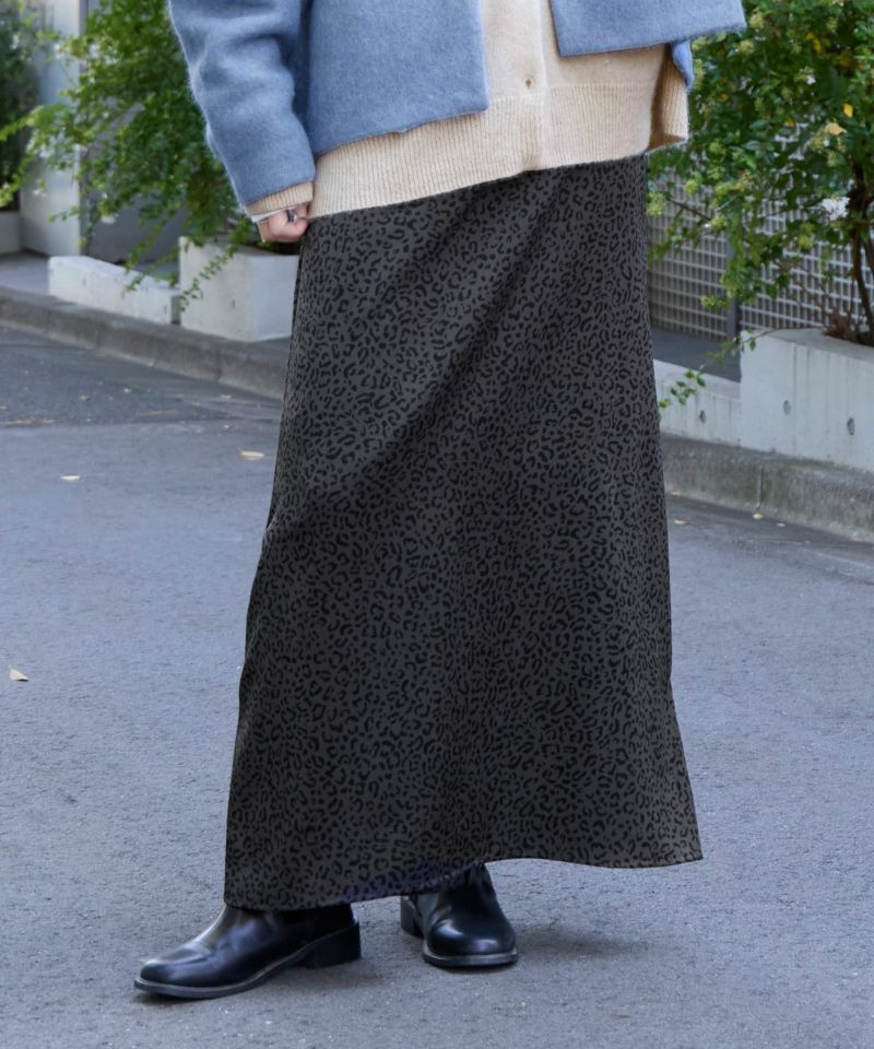 秋冬コーデのワンポイントに。MICA&DEALオリジナルデザインのレオパード柄スカートです。上品で落ち着きのある色合いなので挑戦しやすい一枚。ウエスト周りは後ろにはゴムを施して履き心地よくしました。裾は広がりすぎず女性らしいシルエットに。ニットやカットソーなど秋冬の定番アイテムとも相性が良く、スタイリングのワンポイントになるアイテムです。【fabric】落ち感があり、ソフトタッチの微起毛素材にオリジナルプリントした生地。--------------------------------------透け感:なし裏地:あり伸縮性:なし光沢感:なし生地の厚さ:普通ポケット:なし--------------------------------------【coordinate】ニットやカーディガンとはもちろんのこと、上品で落ち着きのある色合いのレオパード柄なのでスウェットと合わせてカジュアルダウンさせた大人っぽい着こなしも◎こちらの商品は同素材でパンツも展開しています。レオパードプリントパンツ/0125403322関連の特集ページはこちら▼コーデがぐっと華やかに「ORIGINAL LEOPARD PRINT」 *商品画像はできる限り実物の色に近づけるよう徹底しておりますが、お使いのデバイスのモニター設定、お部屋の照明等の閲覧環境により実際の色味と異なって見える場合がございます。*画像の商品はサンプルです。実際の商品と仕様、加工が若干異なる場合があります。予めご了承くださいませ。