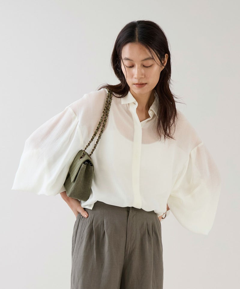 生地の上品なシアー感と袖のデザインがポイントのブラウス。