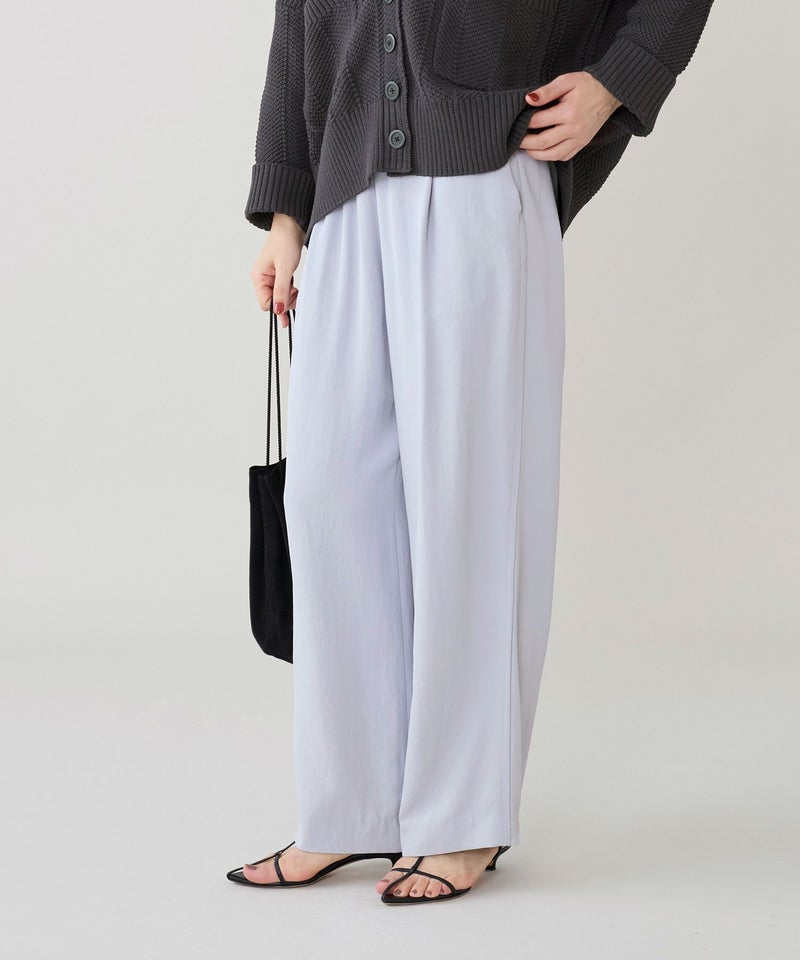 自然な艶が上品な見た目と、リラクシーな履き心地を兼ね備えたイージーパンツ。