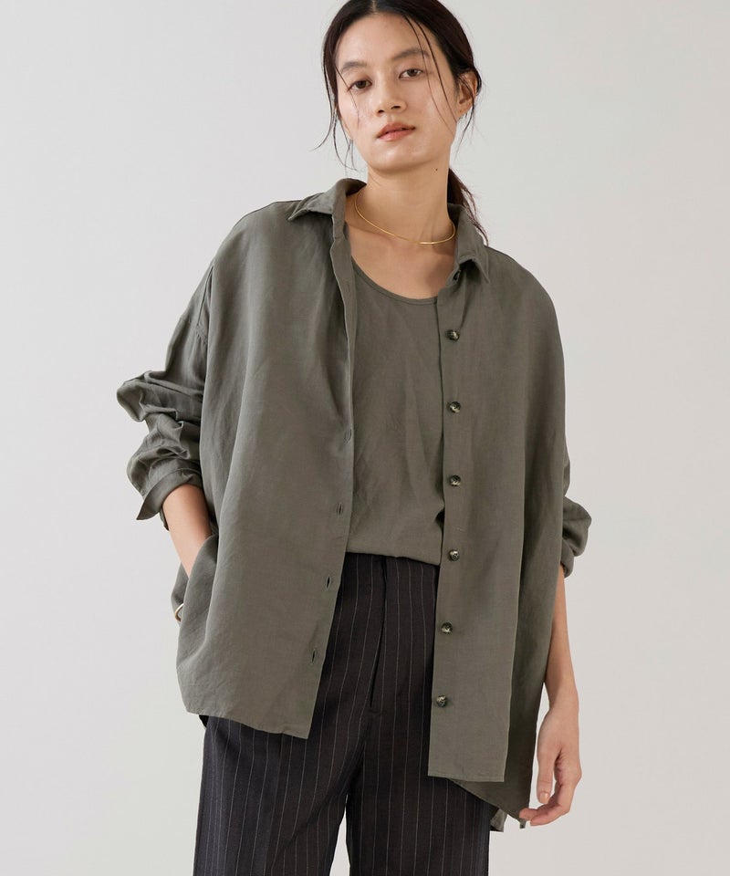 リネンのナチュラル感に加え、レーヨンによる落ち感と光沢を兼ね備えた素材です。