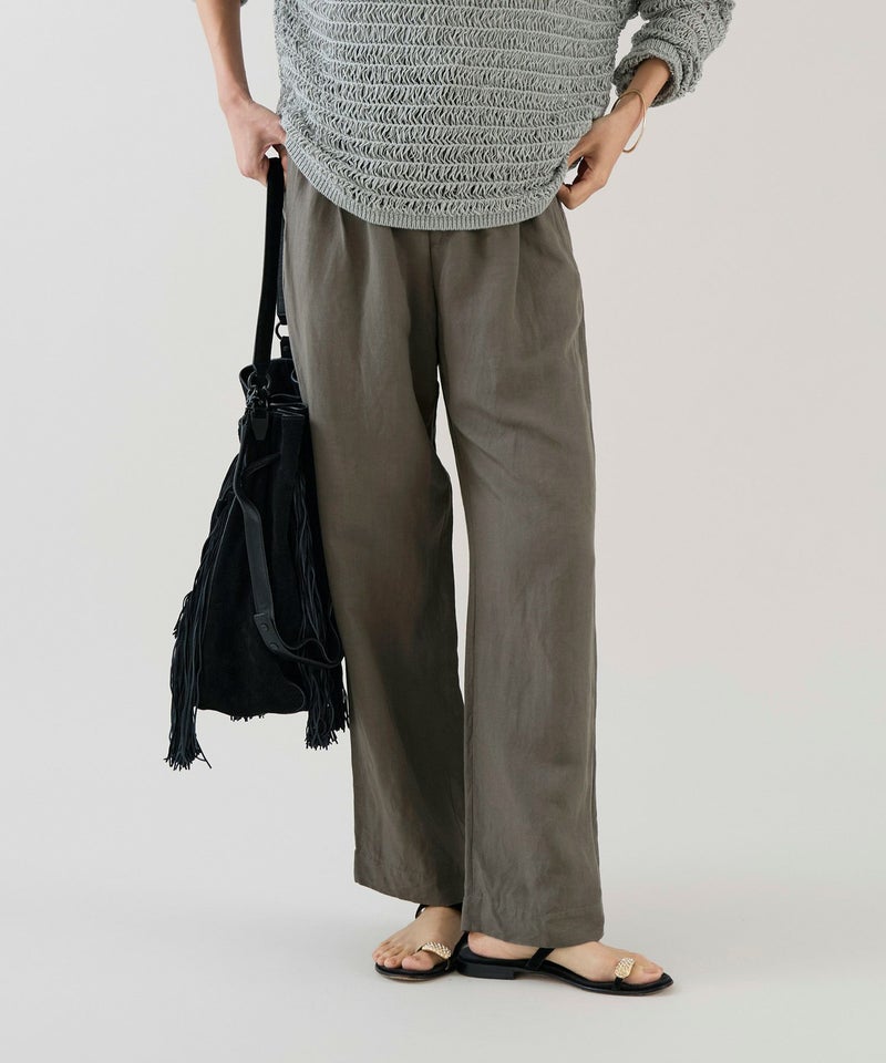 リネンのナチュラル感に加え、レーヨンによる落ち感と光沢を兼ね備えた素材です。