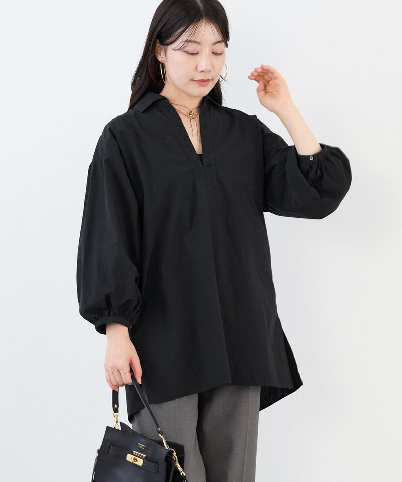 【TICCA】×【MICA&DEAL】 ヴィンテージのレースアップシャツのディティールを生かした、プルオーバーチュニックシャツ。 ボディの細やかなギャザーと太めのパフスリーブがデザインポイントで、たっぷりとギャザーを効かせながらもすっきりと着ていただけるサイズ感です。 襟元のスキッパーデザインが全体をすっきりと見せてくれます。サイドにポケットが付いているのも嬉しいポイント。 オリジナルオーダーでカラーはブラックをセレクト。グッと大人っぽく洗練された印象に仕上がってます。 【fabric】 しなやかさと上品な艶感が特徴のコットンリネンツイルを使用。 糸の配合方法やシルケット加工によって、麻の質感は生かしながらもしなやかさと上品な光沢感をまとうと共に、独特な落ち感と柔らかさを表現しています。 -------------------------------------- 透け感:なし 裏地:なし 伸縮性:なし 光沢感:なし 生地の厚さ:普通 ポケット:あり -------------------------------------- 【coordinate】 シックなブラックカラーなので、甘さを控えつつ大人っぽい印象で着こなせます。 デニムと合わせてカジュアルにまとめれば、抜け感のあるデイリースタイルに。 ワイドパンツやスカート合わせも大人でエレガントな雰囲気を演出してくれます。 メーカー品番:TBEA-472 メーカー表記カラー:Black ※この製品は、製品洗いのため、色・サイズにばらつきがあります。あらかじめご了承ください。 ※加工の特性上、他のものとの摩擦や洗濯などで、風合いの変化や変色、色落ちする場合があります。また、洗濯の際多少縮む事があります。--------------------------------------【TICCA / ティッカ】2016年のスタートより性別や年齢を問わずたくさんの人から愛されるブランド。テーマとするのは“Let's choose the essential clothes”。懐かしくて新しい、時間や時流を超えて、いつまでも存在し続ける服。ワークの意匠を持ちながらモードの顔を見せる、タフさと上品さが備わった服。 そんな気品を添えるニューベーシックなスタイルを提案しています。--------------------------------------