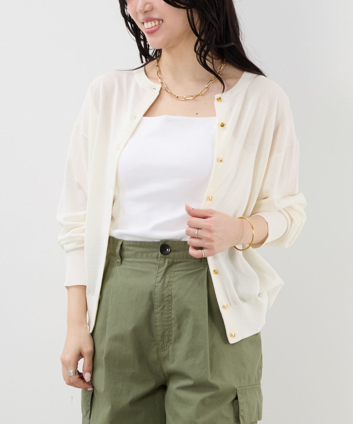 他の画像を見る 接触冷感/UVカット-ゴールドボタンクルーネックカーディガン/0125308206 ¥ 19,800 税込 会員価格あり 販売期間 2025/12/11 0:00 〜 カートに入れる お気に入りに登録する