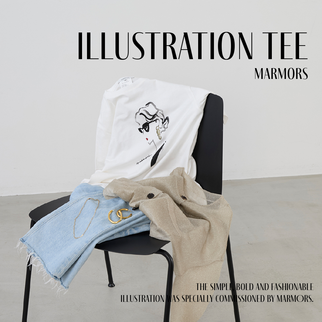2026.04.01 【marmors】illustration tee シンプルかつ大胆でファッショナブルな イラストを施したデザインTシャツ。 イラストは海外のエディターをイメージして、 特別に書き下ろしてもらったデザインです。 是非チェックしてみてください。
