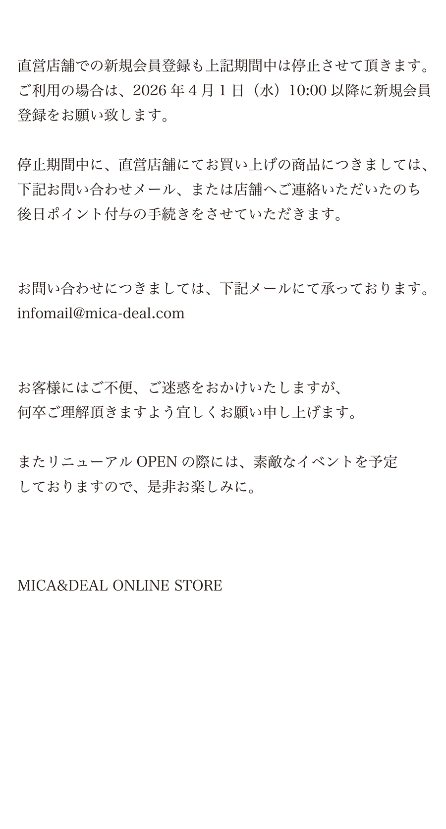 3/31(火)ONLINE STORE / ReNewal に伴う一時 CLOSEのお知らせ