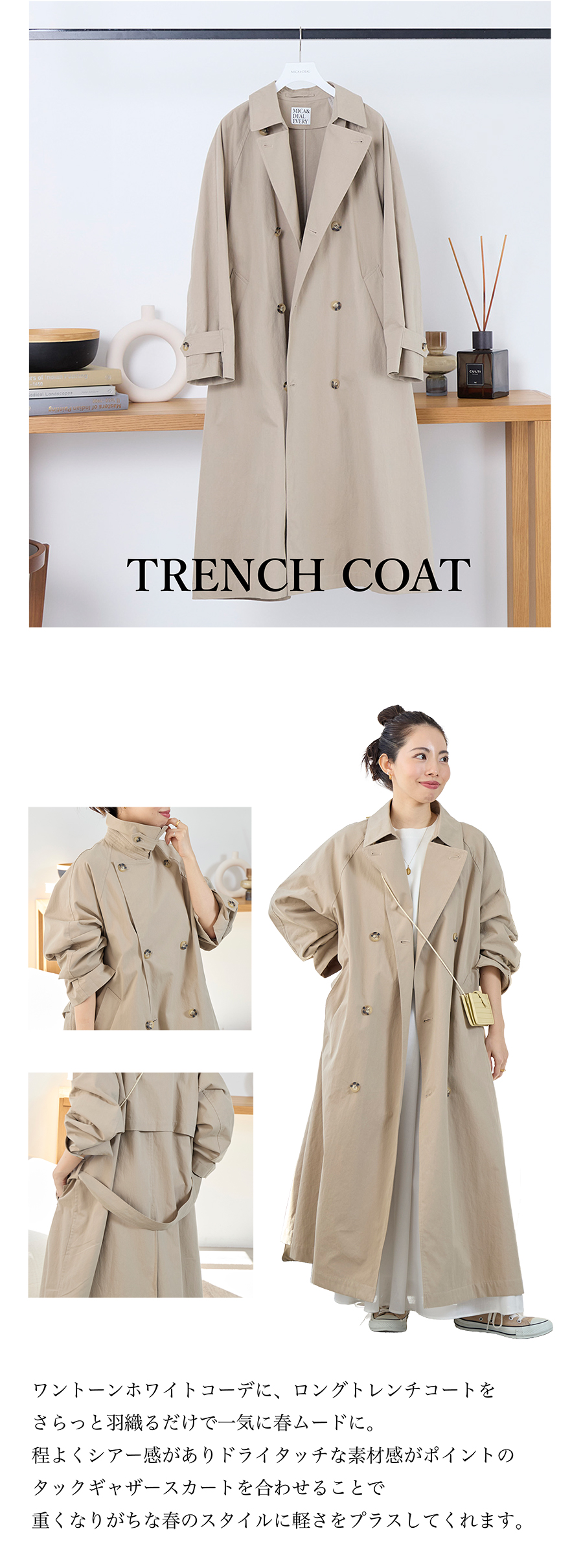2026.02.18 春を先取り!季節の変わり目に頼れる「Spring Outer」 春気分をグッと上げてくれる春アウター。 定番のトレンチコートやブルゾン、ジャケットなど バリエーション豊富な軽アウターが揃いました。 是非この機会にチェックしてみてください。