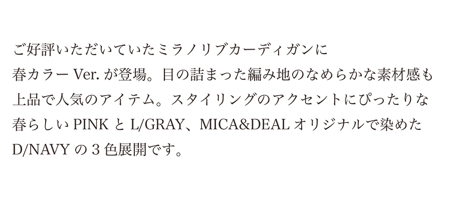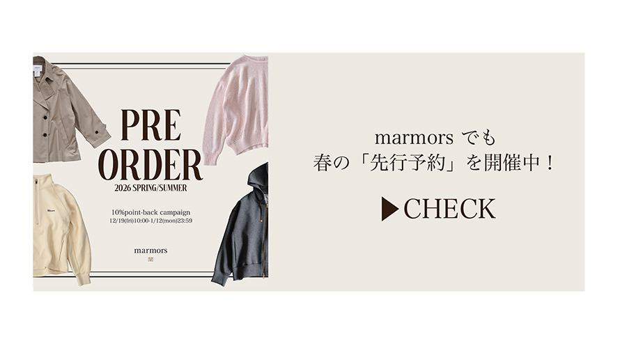 2025.12.17 PRE ORDER -2026 Spring- 【先行予約】10%ポイント還元☆ 春の新作アイテムのWEB先行予約がスタート! さらに今なら10%ポイント還元☆ 春気分高まるカラーニットやプルオーバー、 チノパンなど寒い時期からでもコーデに 取り入れられるアイテムが揃っております。 ぜひこの機会にご覧くださいませ。 【先行予約】2025/12/19 10:00〜 ※終了日時は、商品ごとに異なります。 予約商品受付期間、お届け時期につきましては 各商品説明欄をご確認ください。